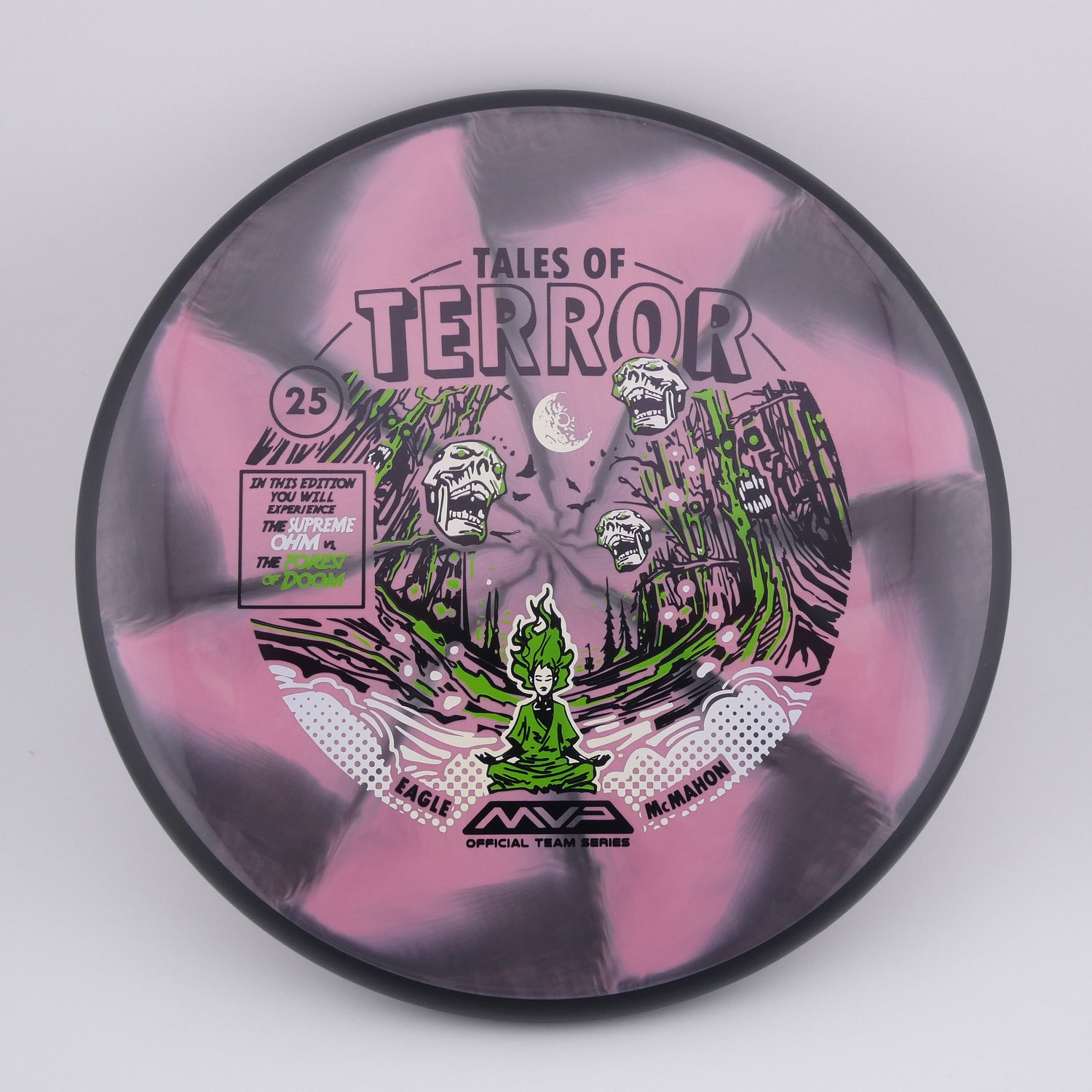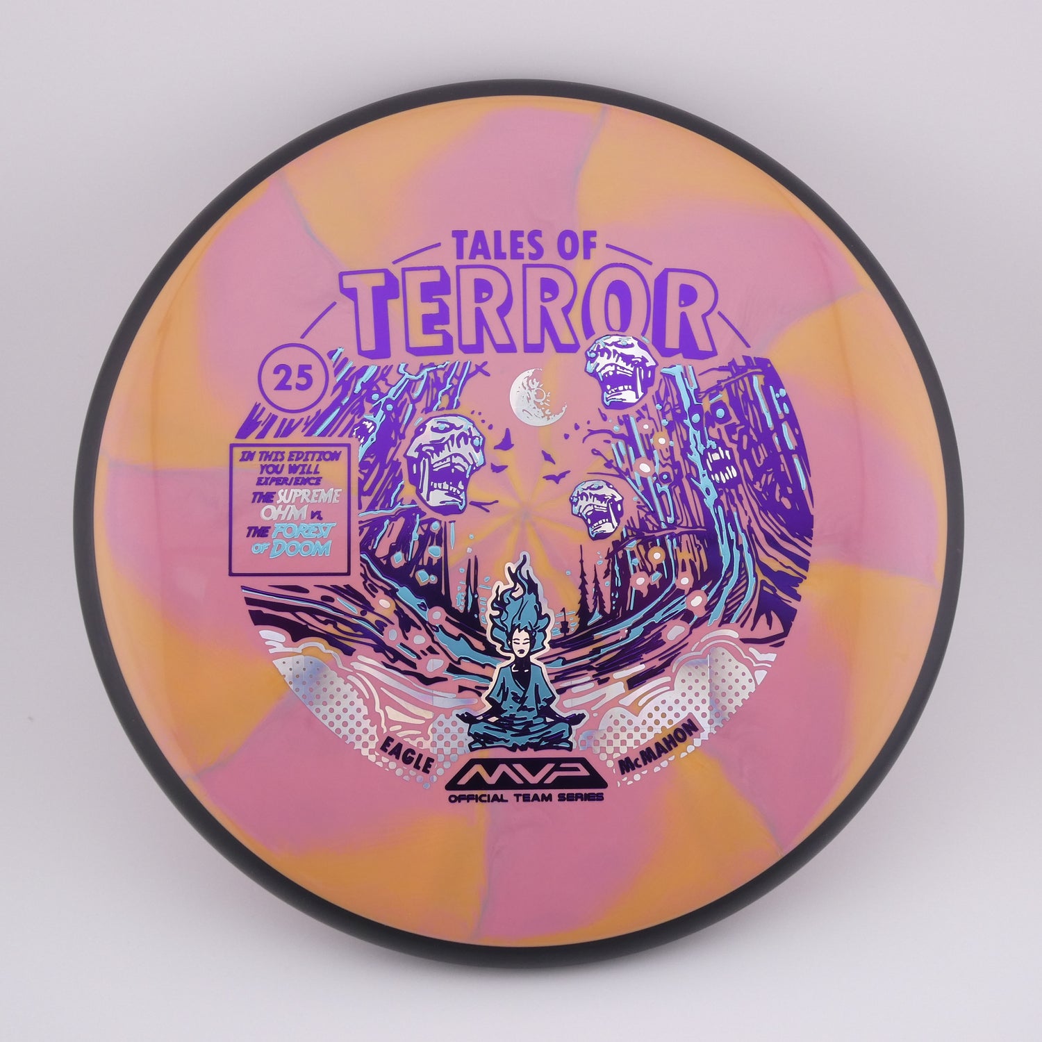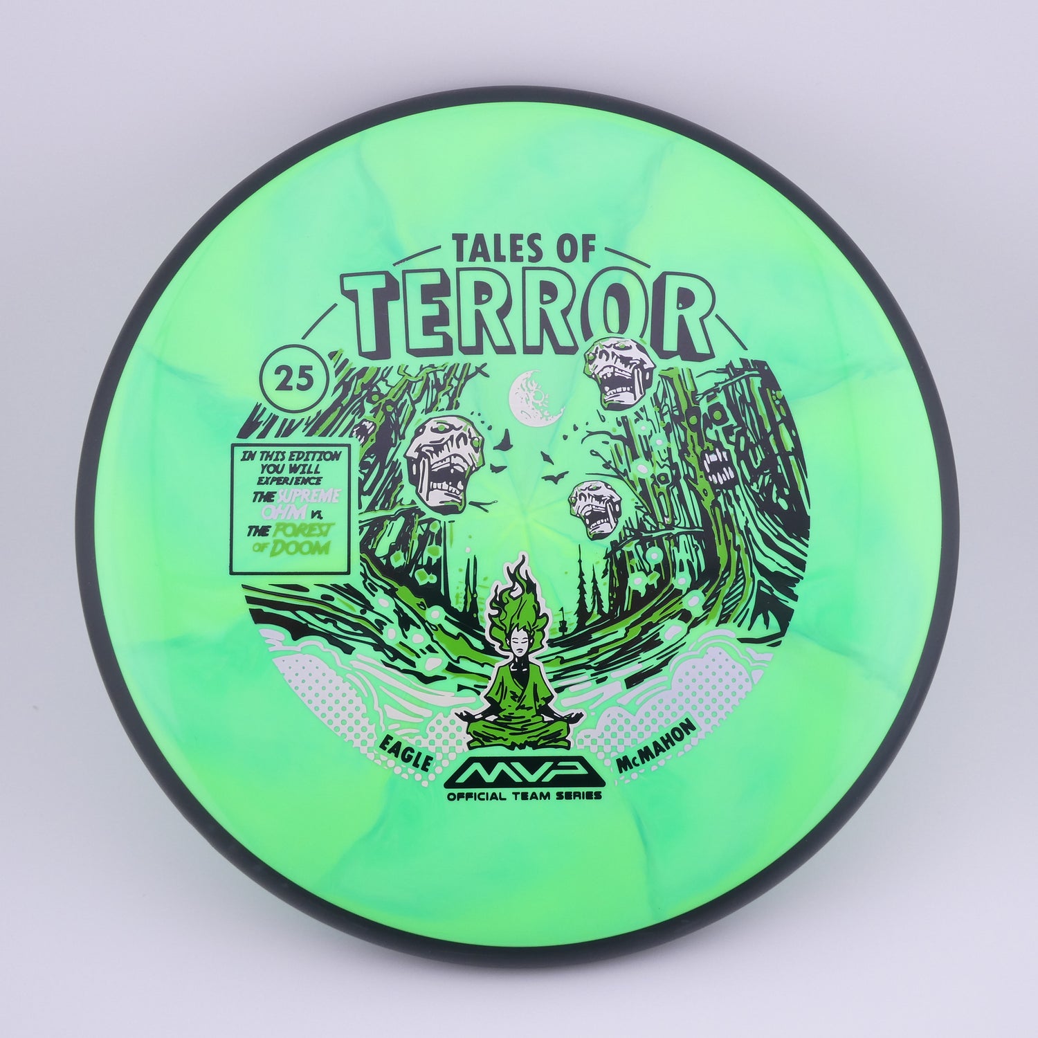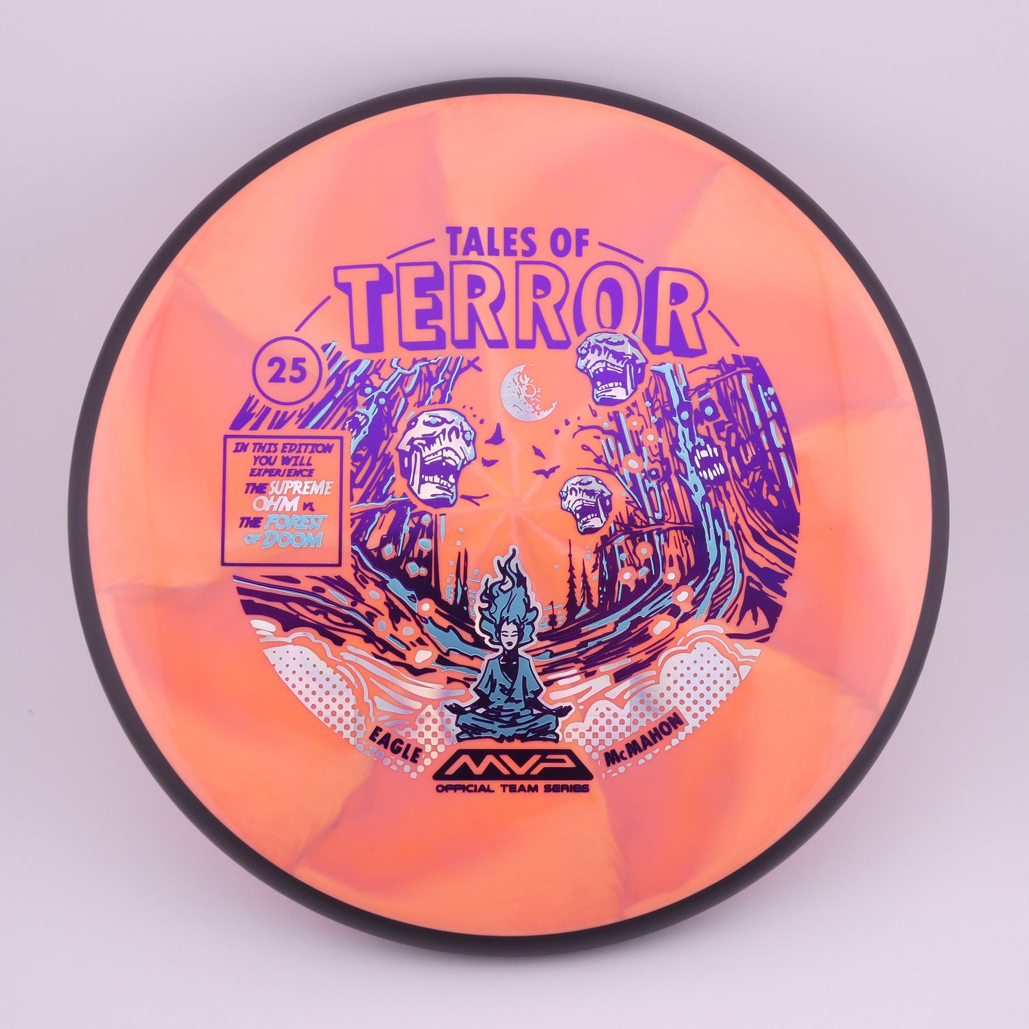 Step confidently into the woods with the Cosmic Neutron Ohm, one of MVP Disc Sports’ most versatile and glide-filled putters. Featuring John Dorn’s “Forest of Doom” artwork, this special edition Ohm highlights the disc’s ability to make even the tightest fairways feel wide open.