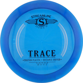 The Trace has a manageable 21mm rim width and straight-stable flight that places it squarely in the Speed 11 Power Straight market. The Trace’s moderate dome is smooth and even, with a shoulder and depth that yields excellent glide. Most players will be able to stand the Trace up on a hyzerflip, but the Trace will soak up plenty of power before being pushed off its straight line. Its ending fade is smooth but dependable for easy ranging.