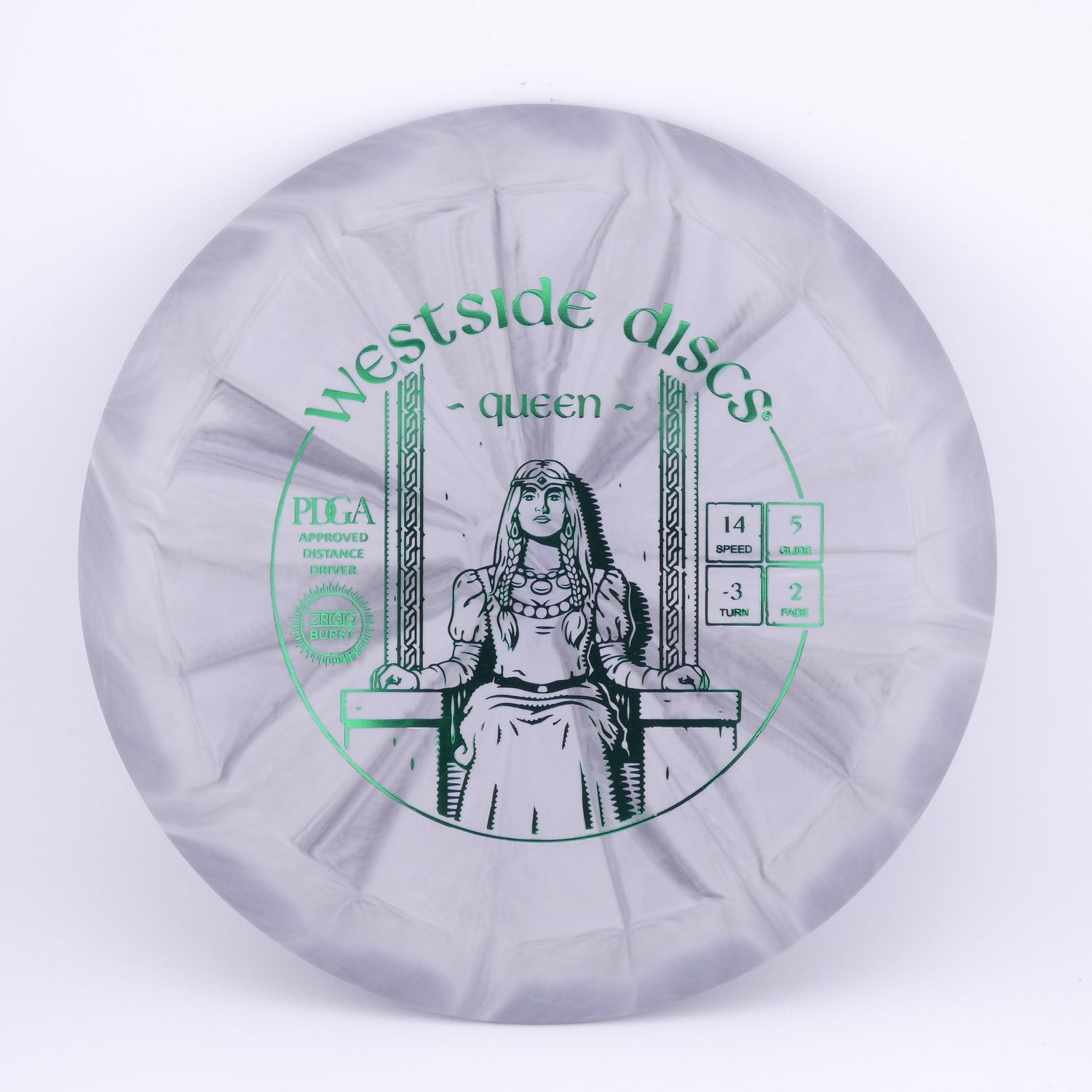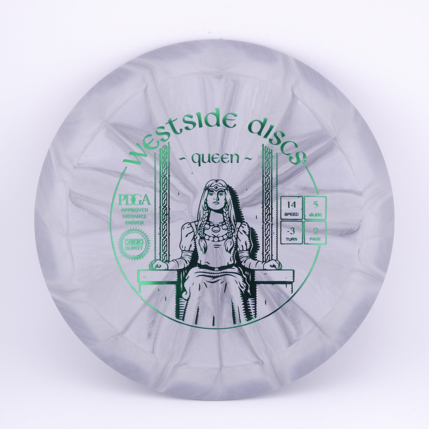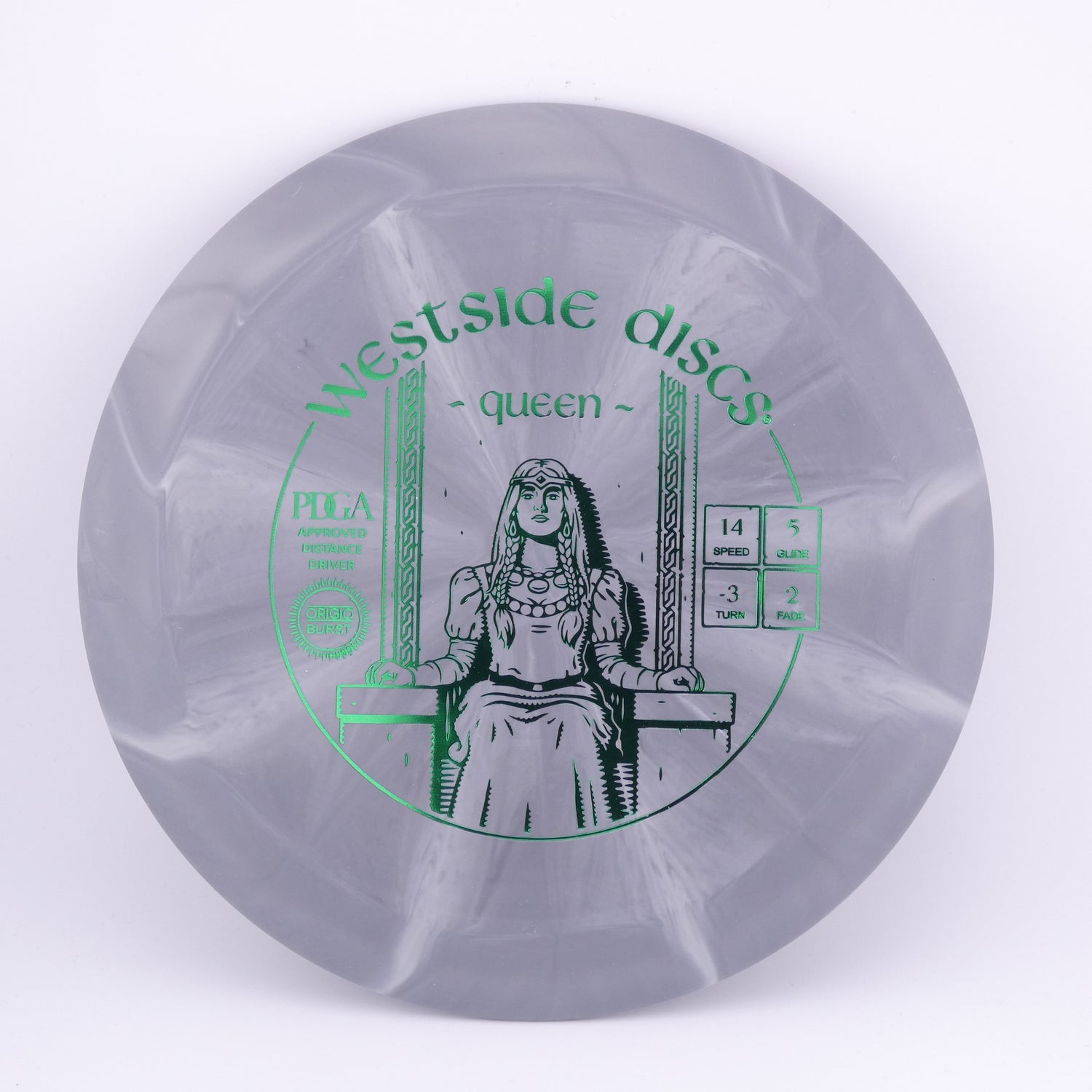 Westside Discs: A strong Queen has the same qualities as that of a King, just in a smaller package. This Queen is just as fast as its counterpart but has a noticeably smaller feel in the hand. Great as a bomber or a stand still surgical instrument. The Queen will rule your bag with the right mix of grace and power. Now available in VIP and Tournament.