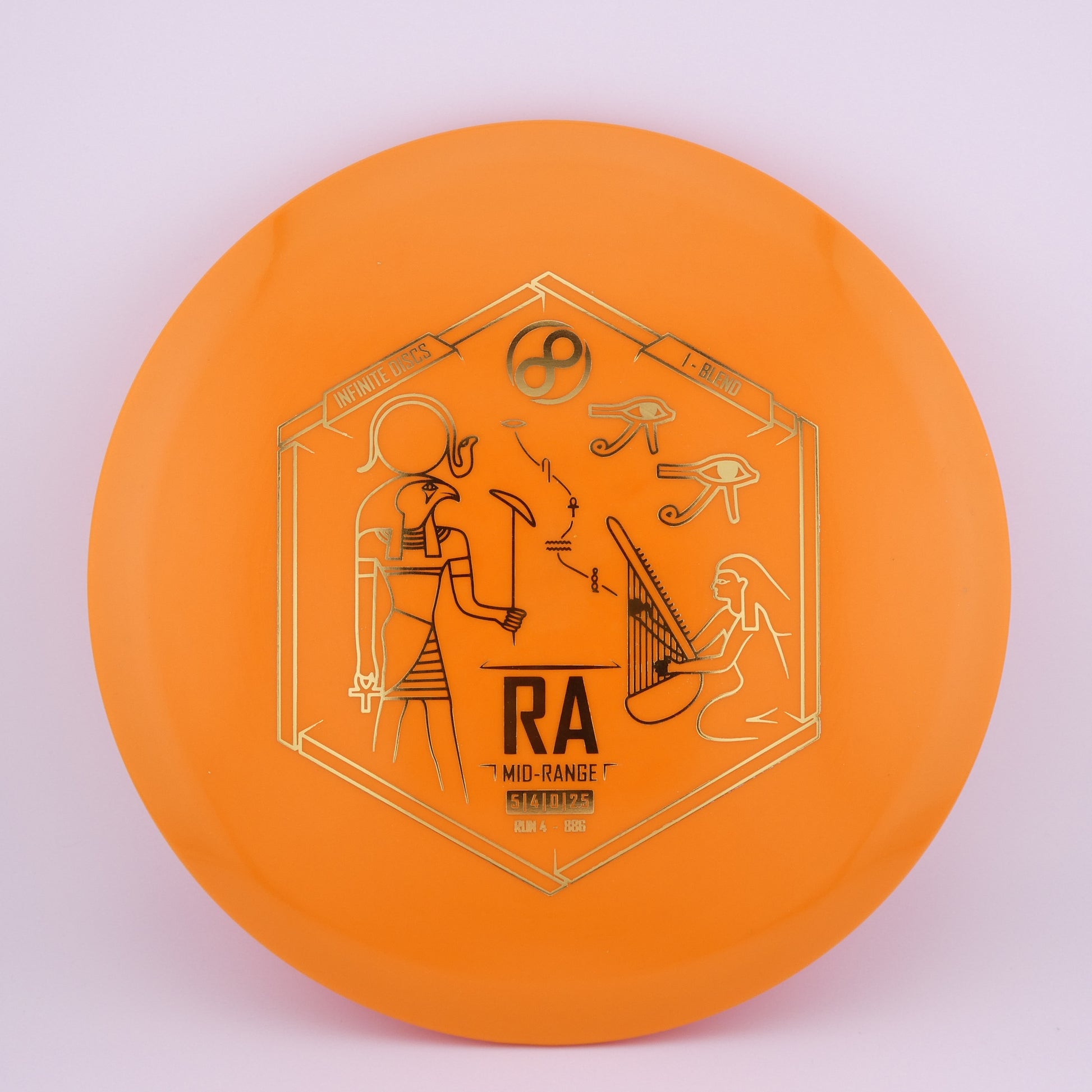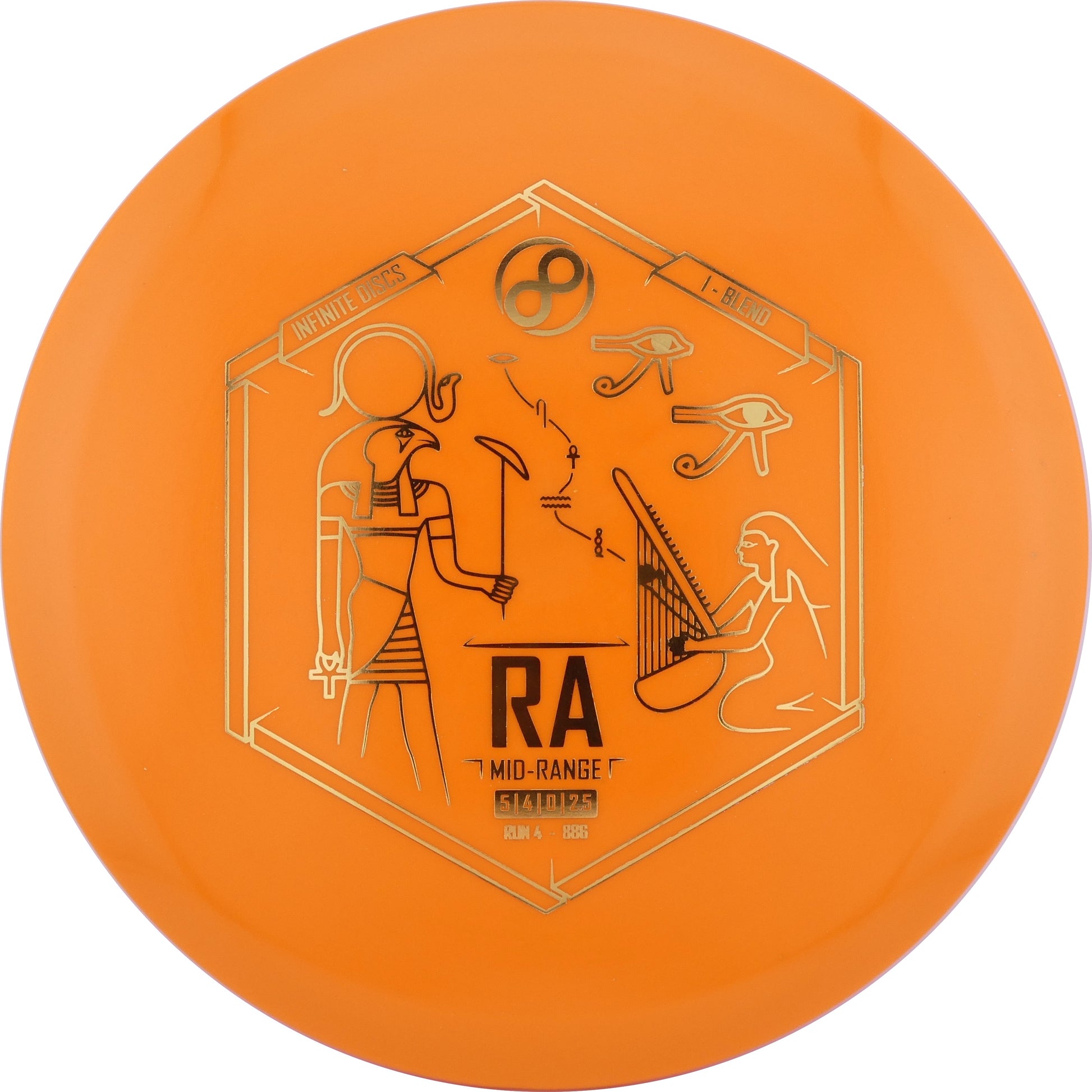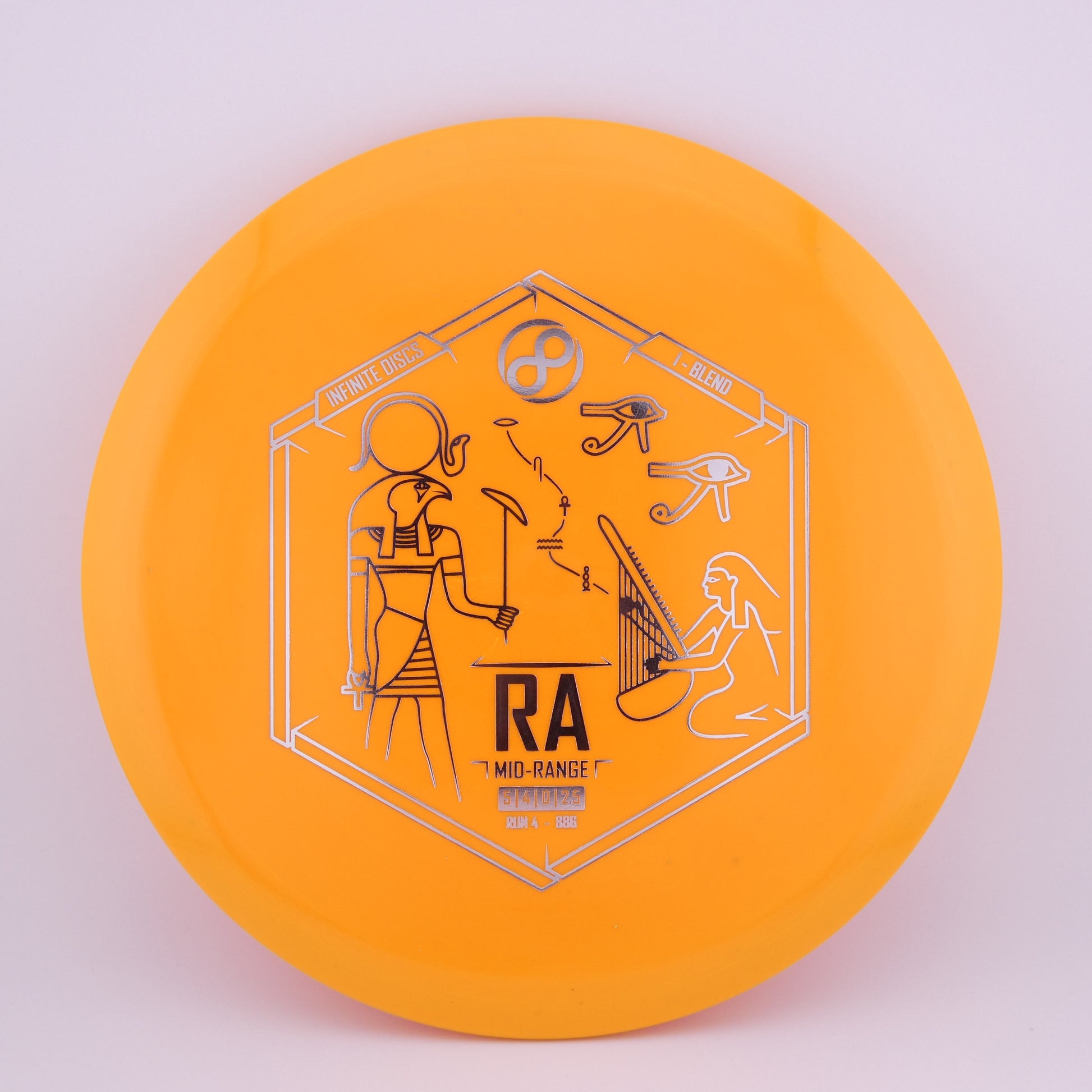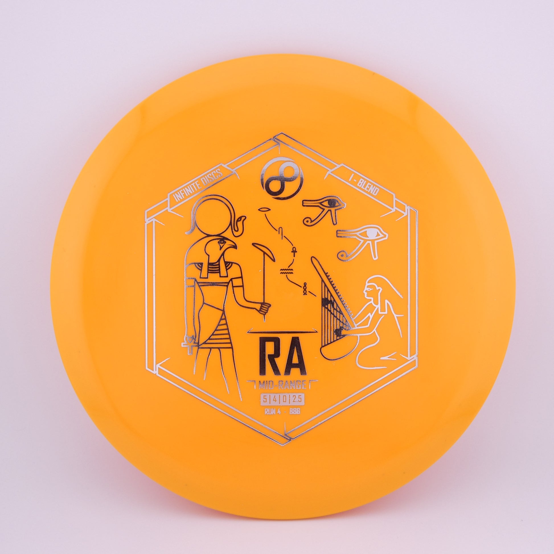 Infinite Discs: The Infinite Discs Ra is a moderately overstable midrange with a very flat top and comfortable, beaded rim. It feels and flies perfectly for both backhand and forehand players. It is difficult to find a midrange that is so easy to control and so precise under multiple course conditions.